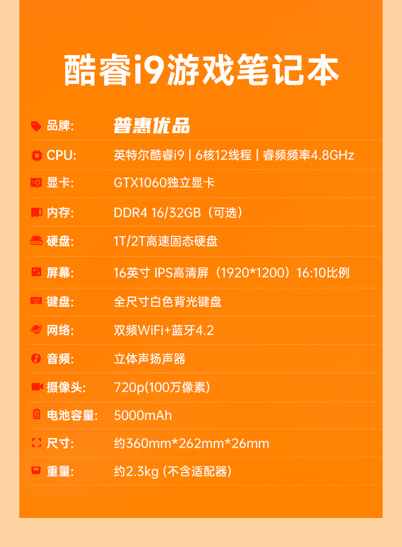 普惠优品电脑笔记本电脑2025款酷睿i9/i7独显高刷电竞