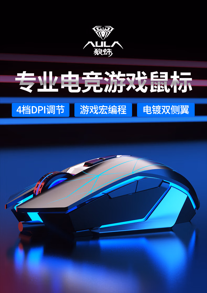 狼蛛(AULA)游戏鼠标有线鼠标电竞吃鸡