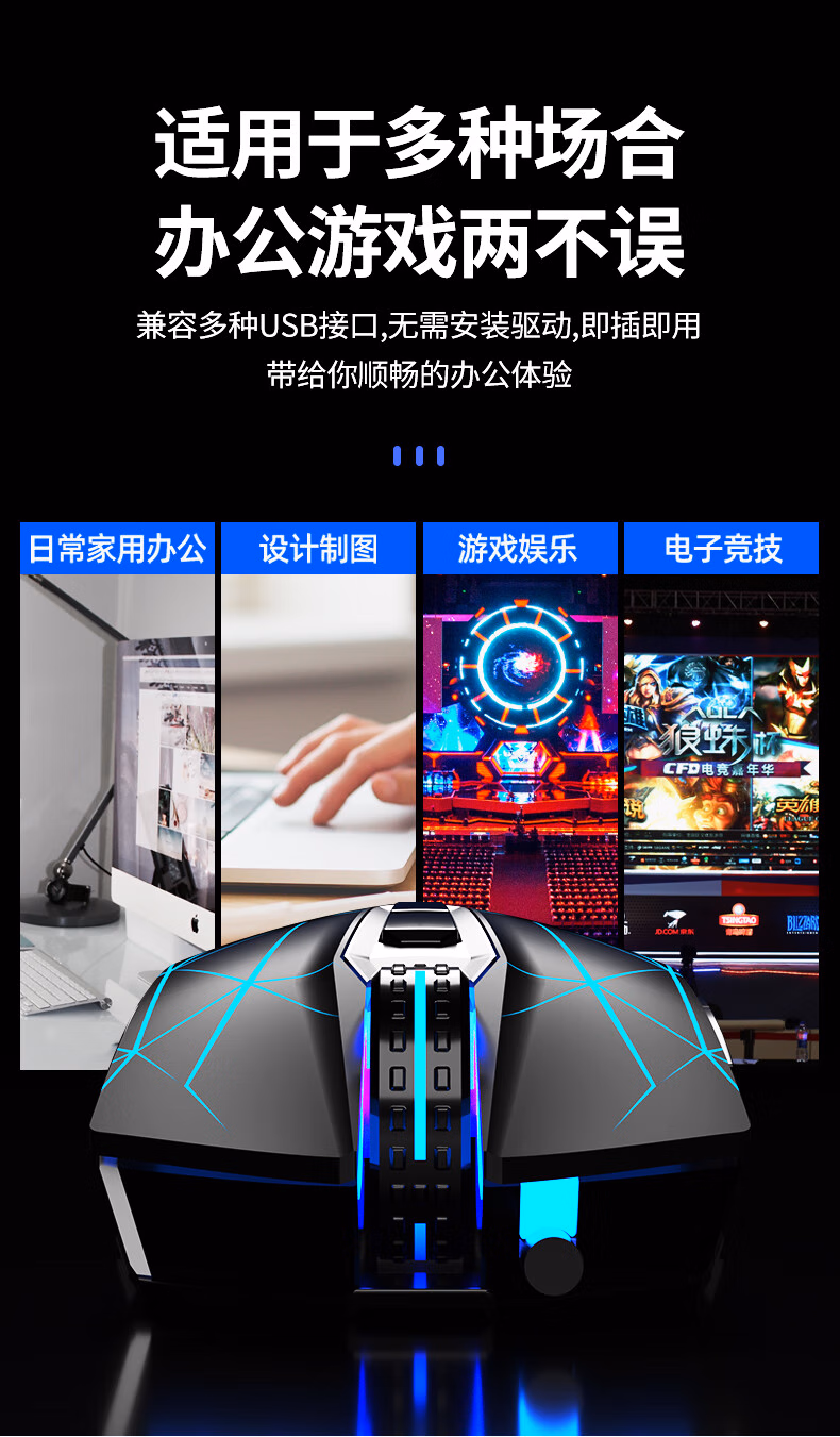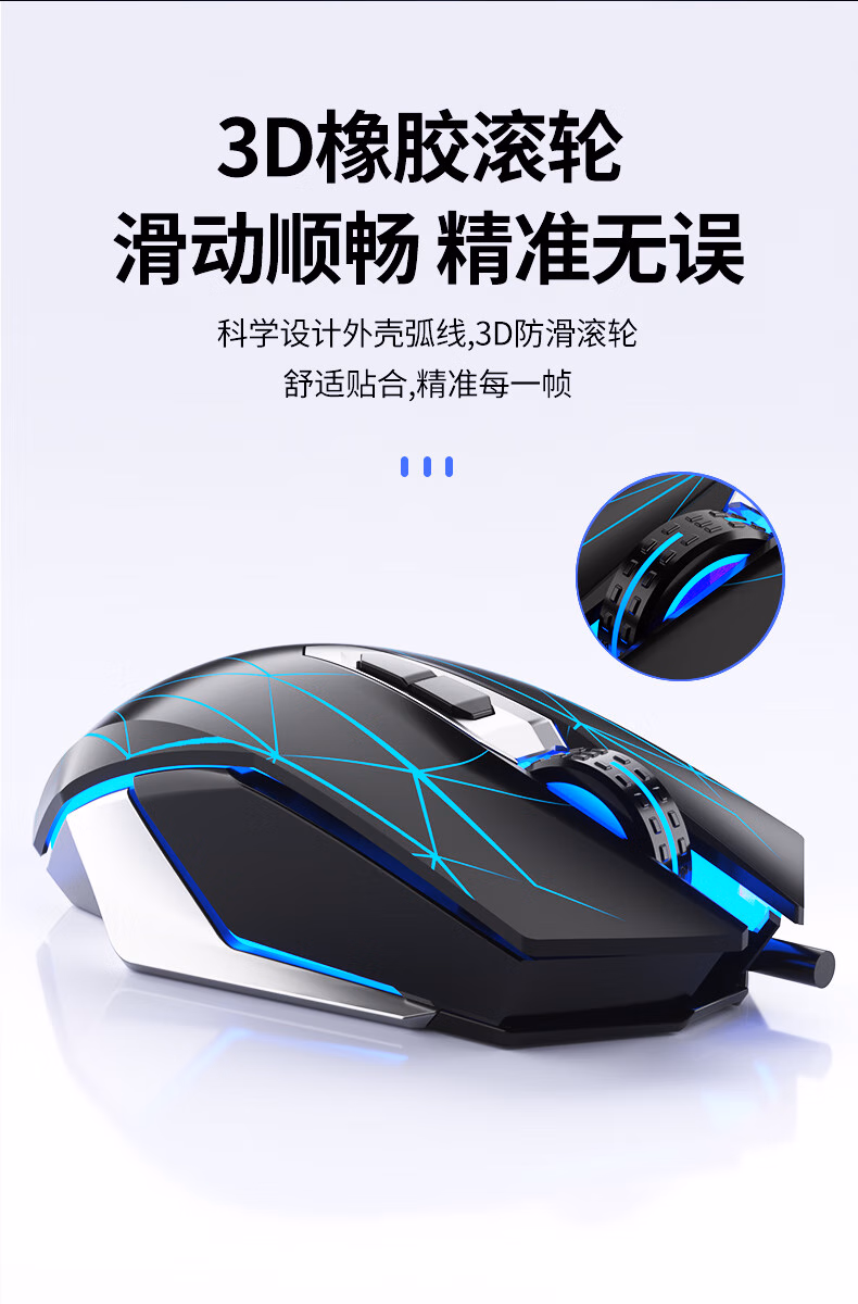 烽火狼 有线电竞办公静音鼠标usb游戏专用