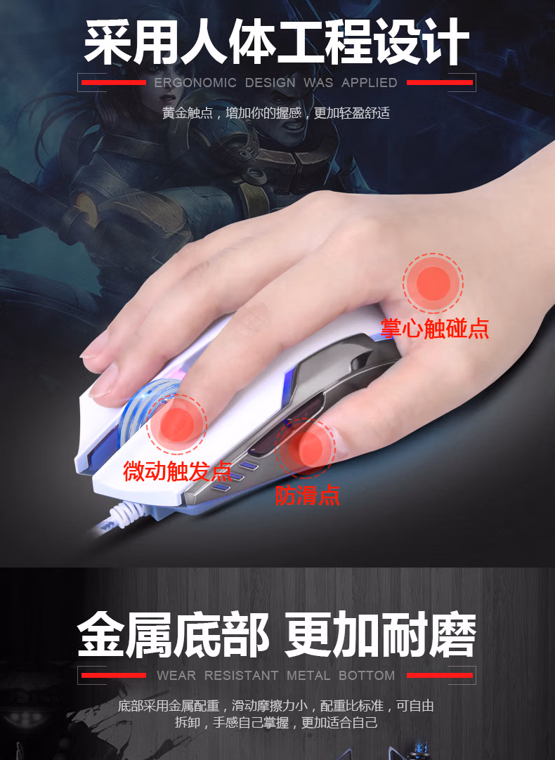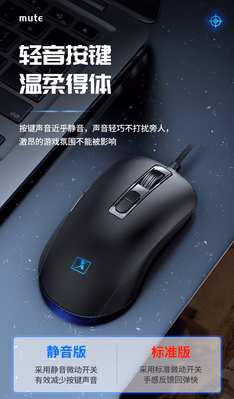烽火狼 有线电竞办公静音鼠标usb游戏专用