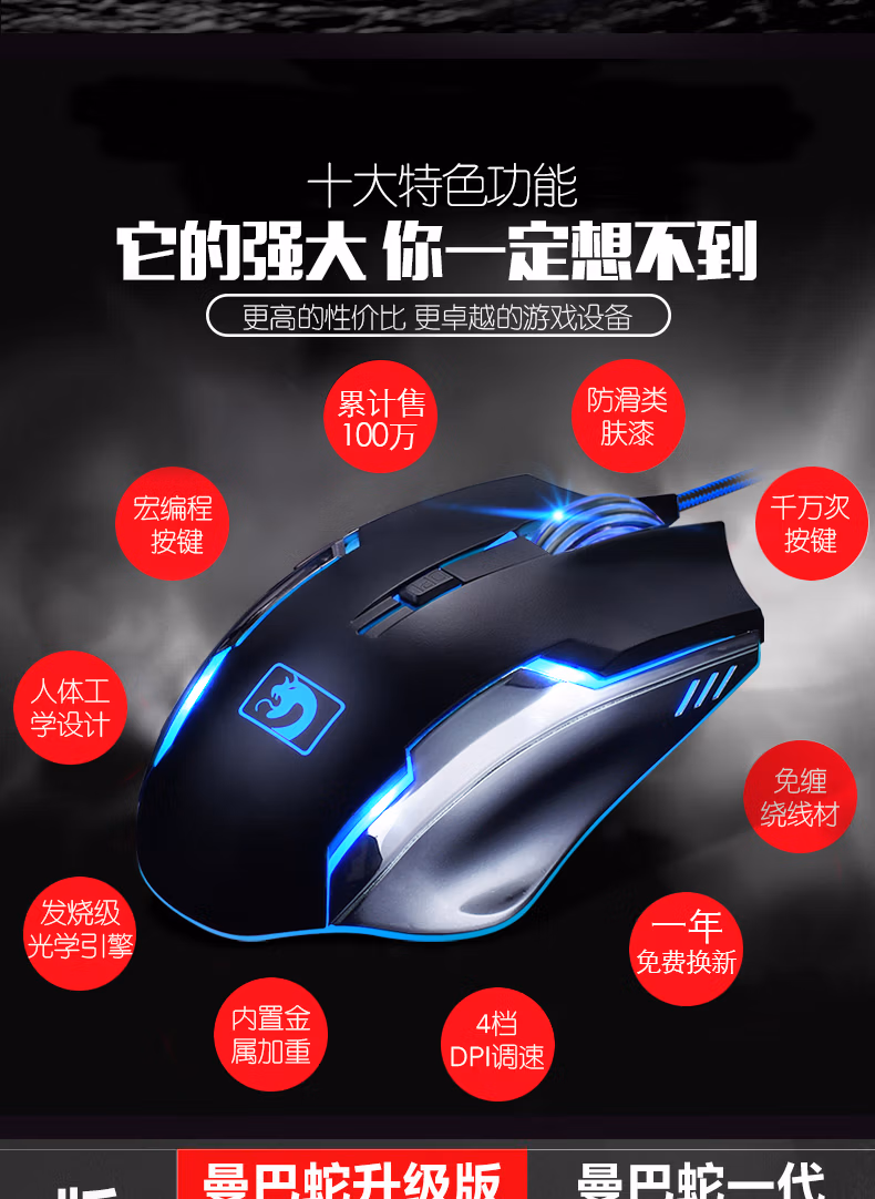 曼巴蛇电竞机械游戏有线鼠标