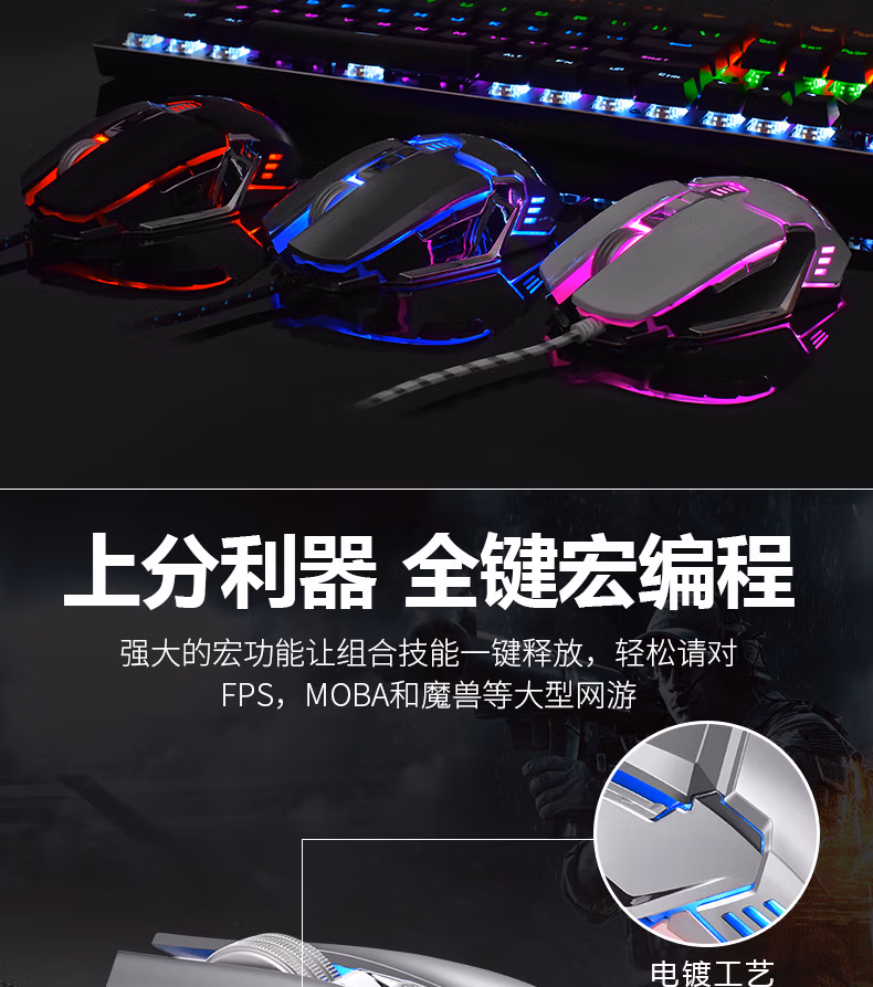 联想有线游戏电竞鼠标轻量化可宏编程自定义
