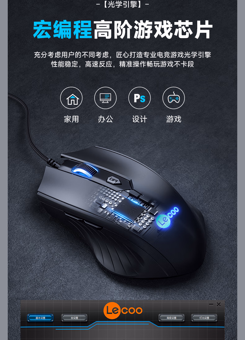 联想有线游戏电竞鼠标轻量化可宏编程自定义