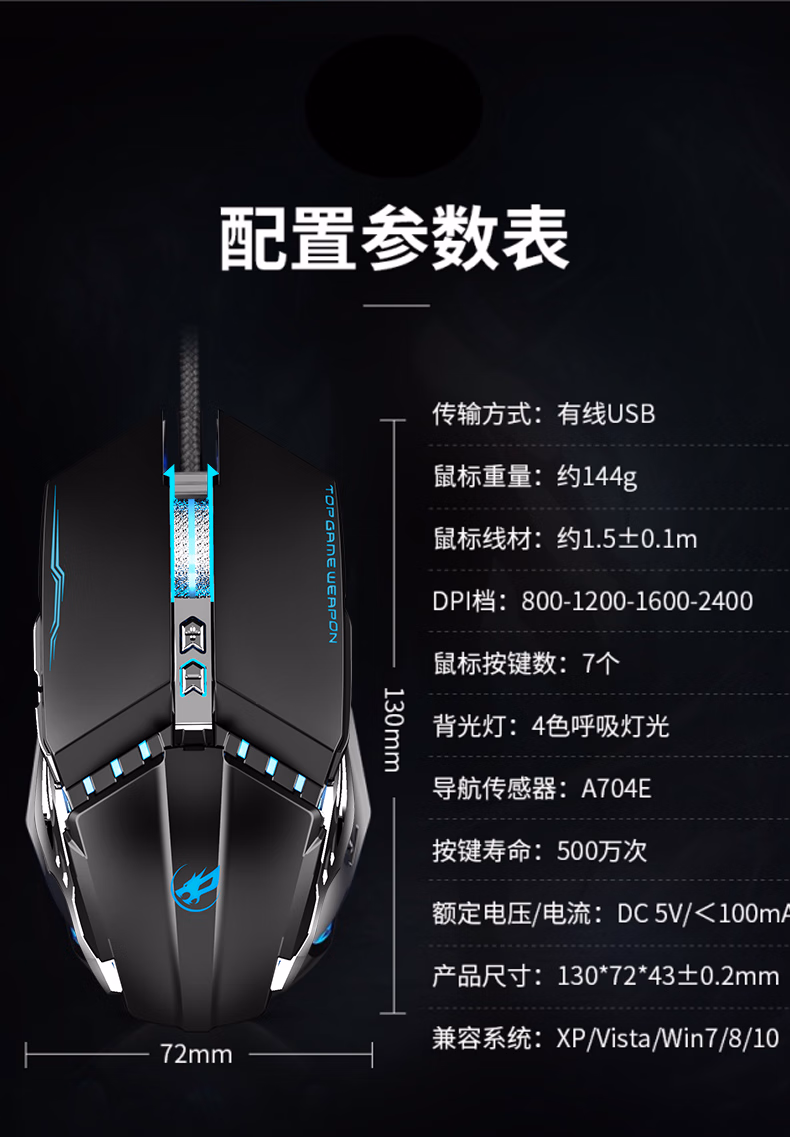 曼巴蛇电竞机械游戏有线鼠标
