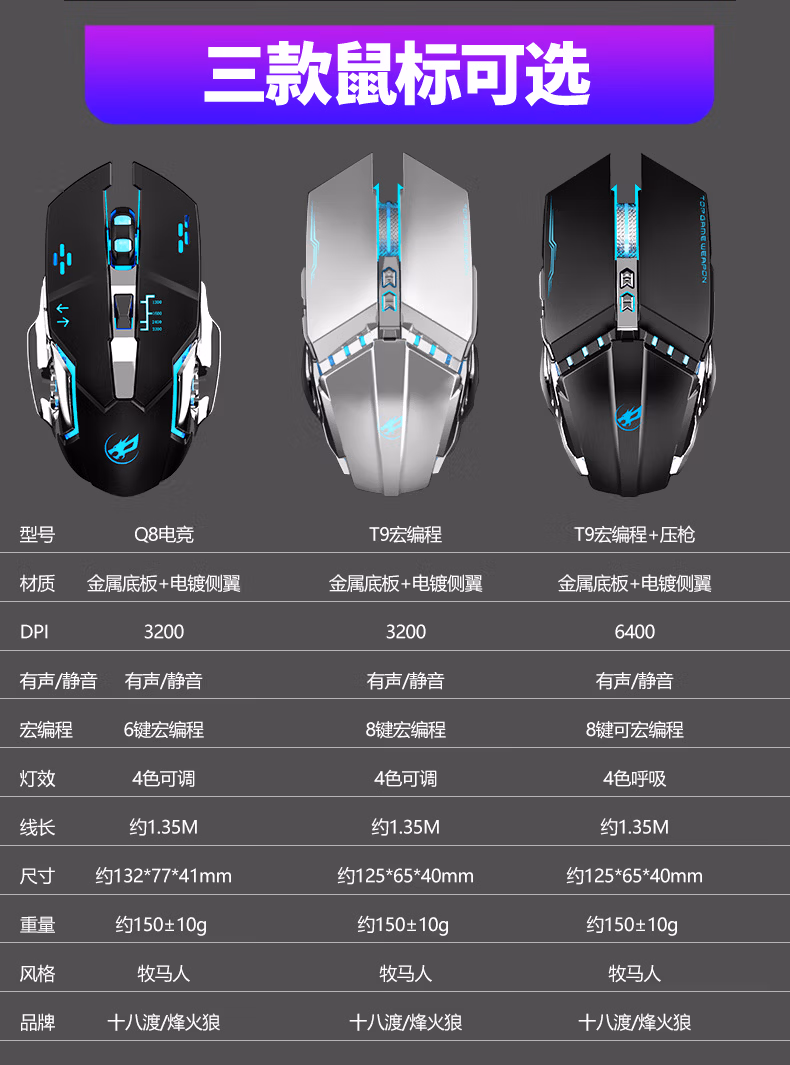 烽火狼 有线电竞办公静音鼠标usb