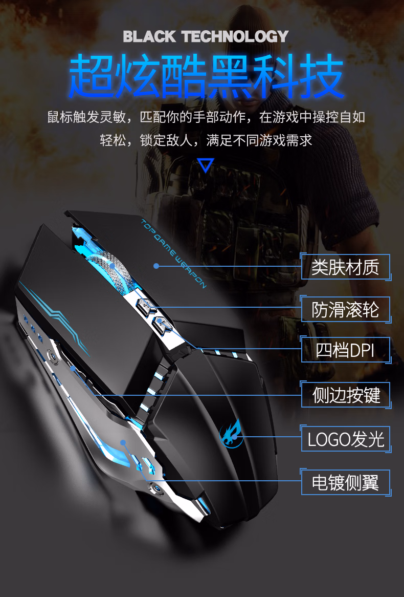 狼蛛(AULA)游戏鼠标有线鼠标电竞吃鸡