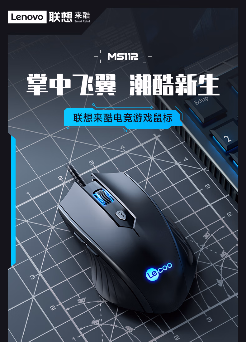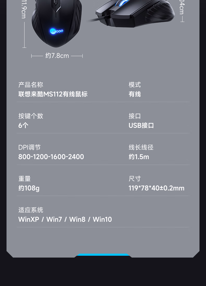 联想(Lenovo)来酷有线鼠标 USB接口游戏办公鼠标
