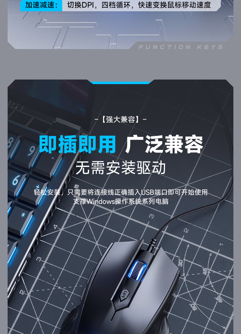 烽火狼 有线电竞办公静音鼠标usb