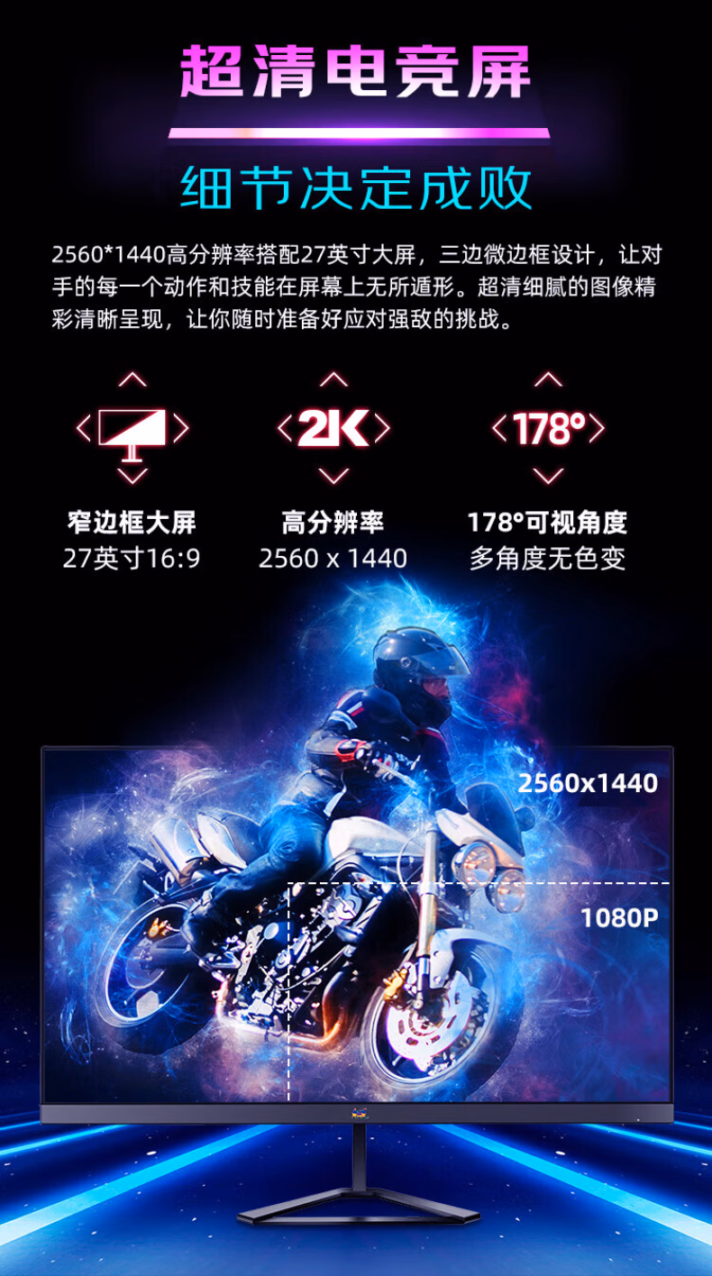 雷技27英寸2K180Hz电竞游戏高刷显示器