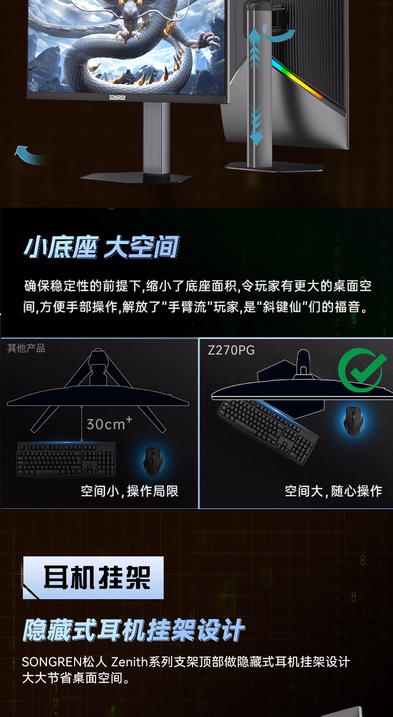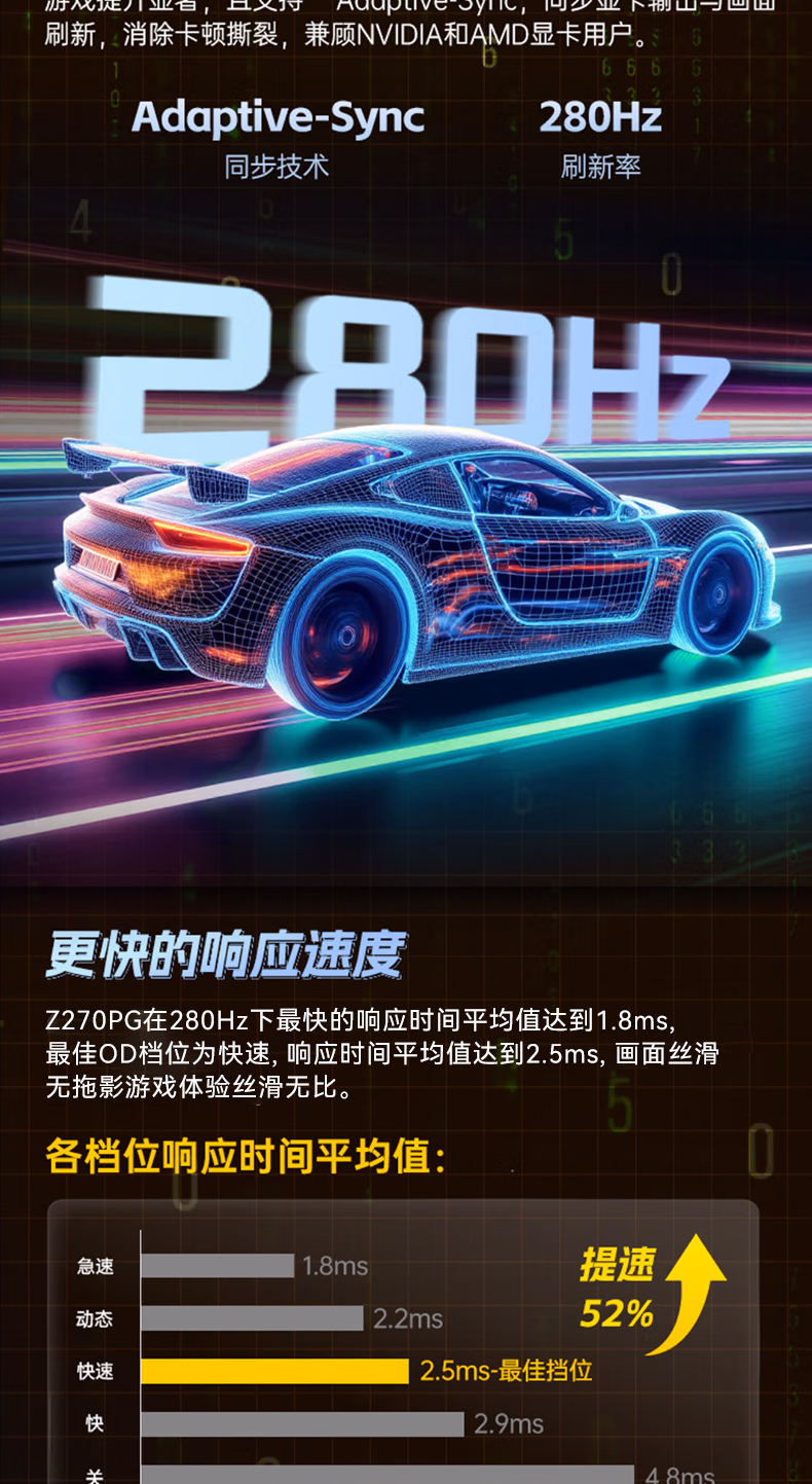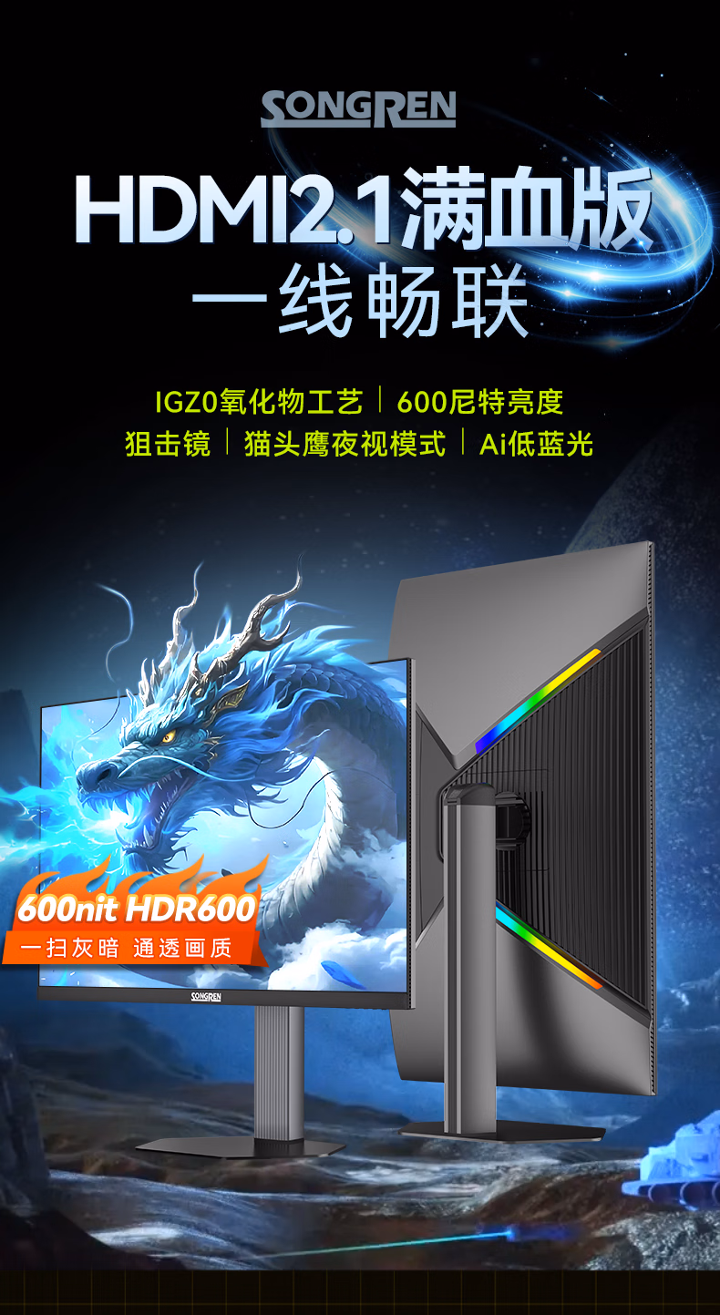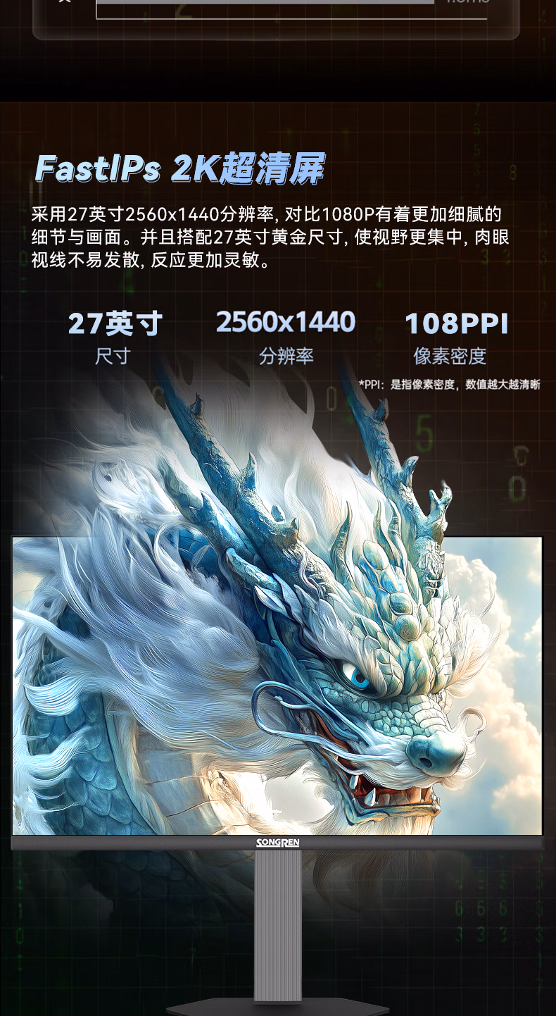 松人260Hz显示器27英寸2k280高刷1ms响应Fast