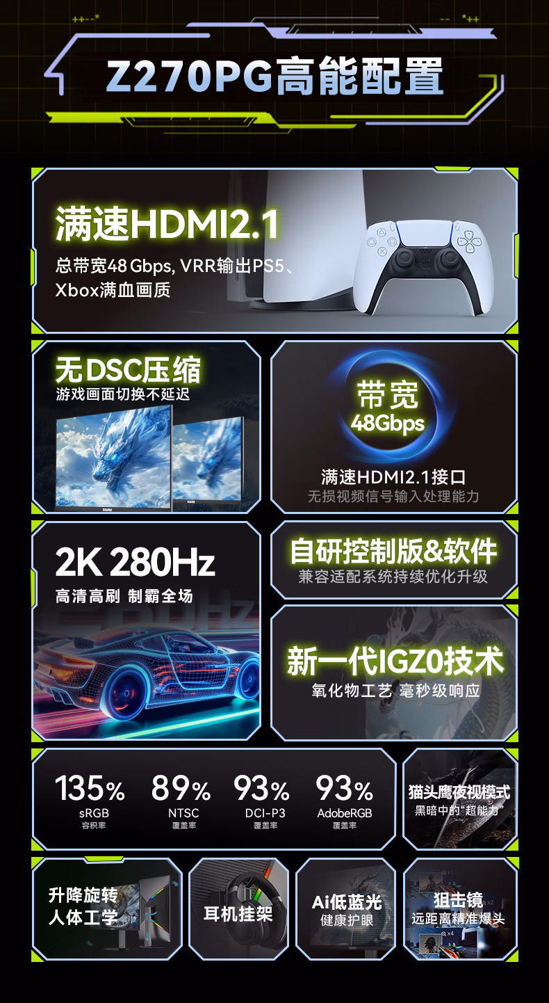 SANC盛色27英寸2K340Hz FastIPS硬件低蓝光