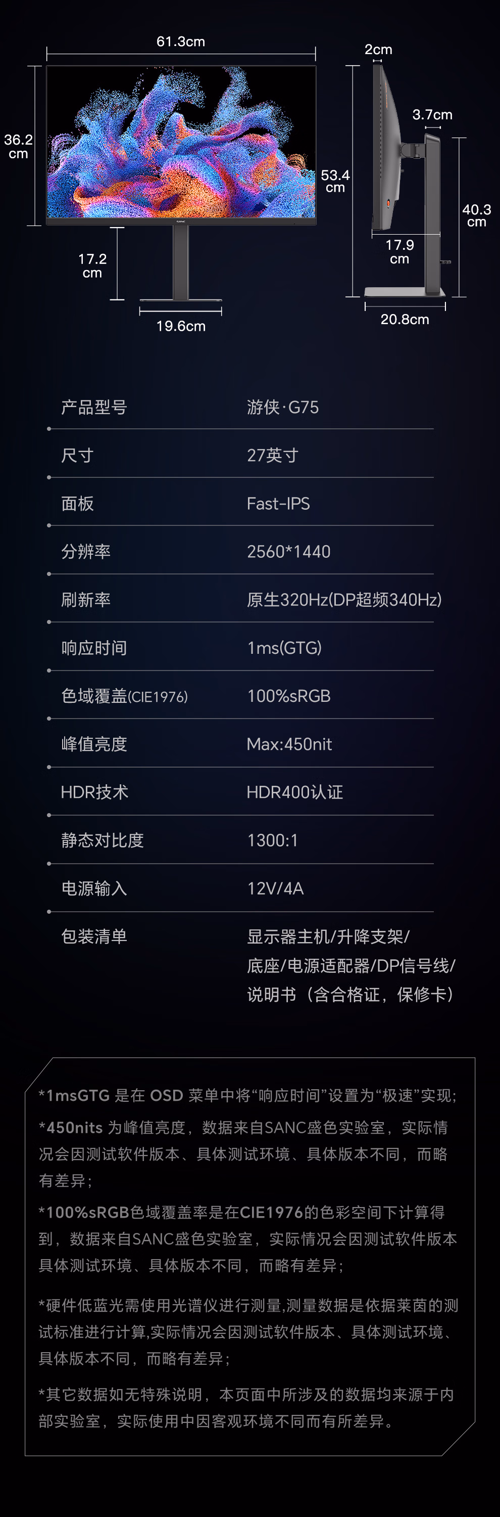 松人260Hz显示器27英寸2k280