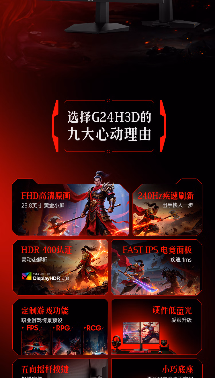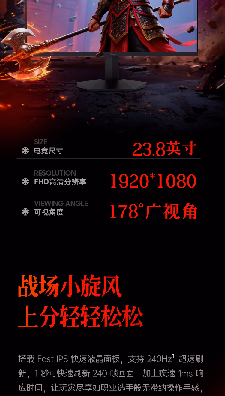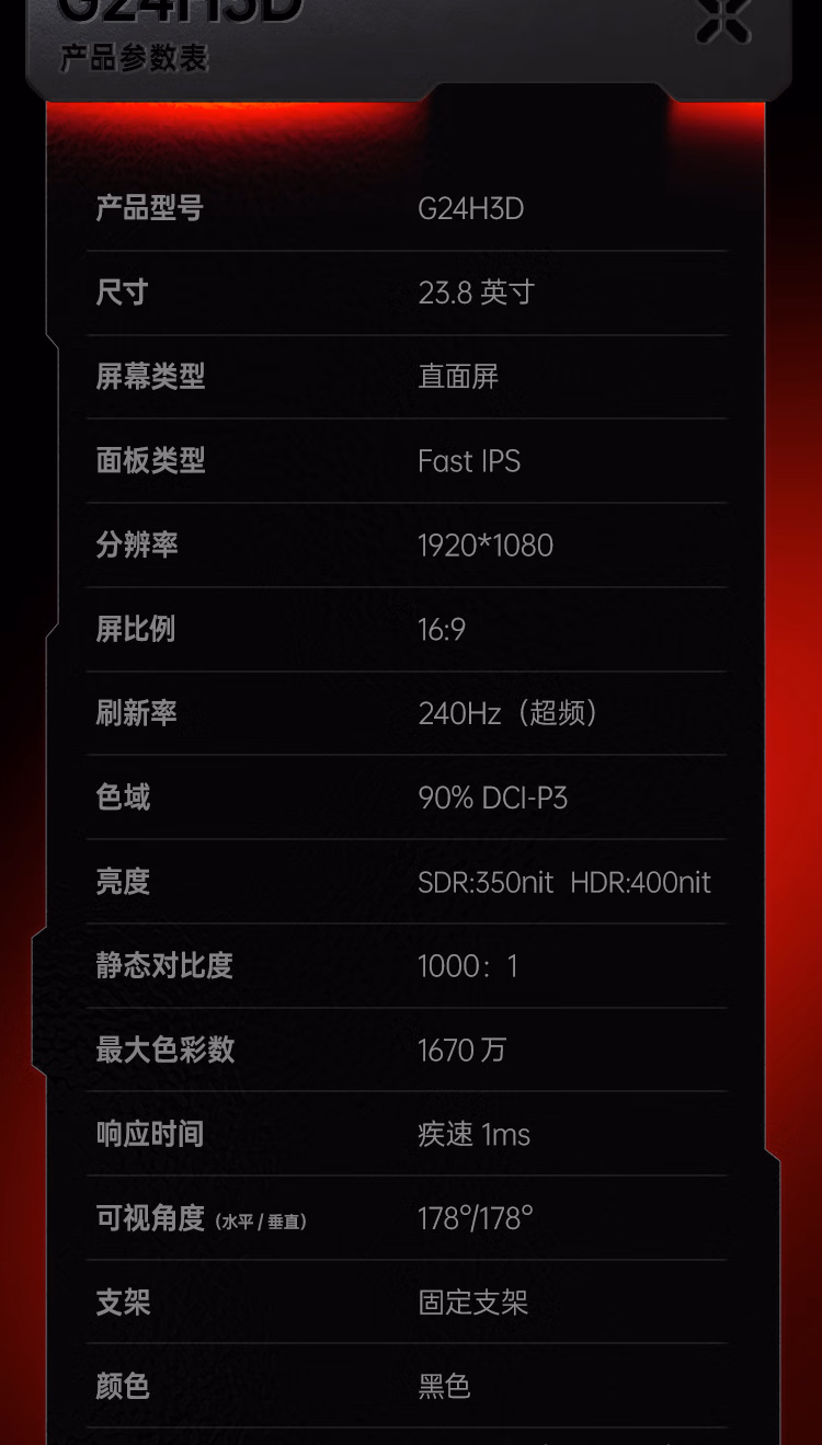 大鲨鱼24英寸240Hz显示器高刷电竞屏电脑1k