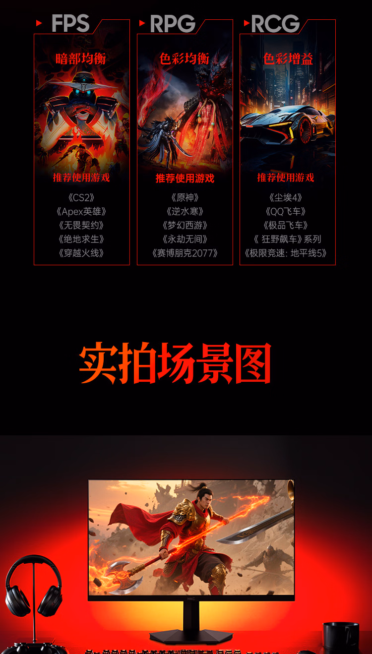 雷技27英寸2K180Hz电竞游戏高刷显示器