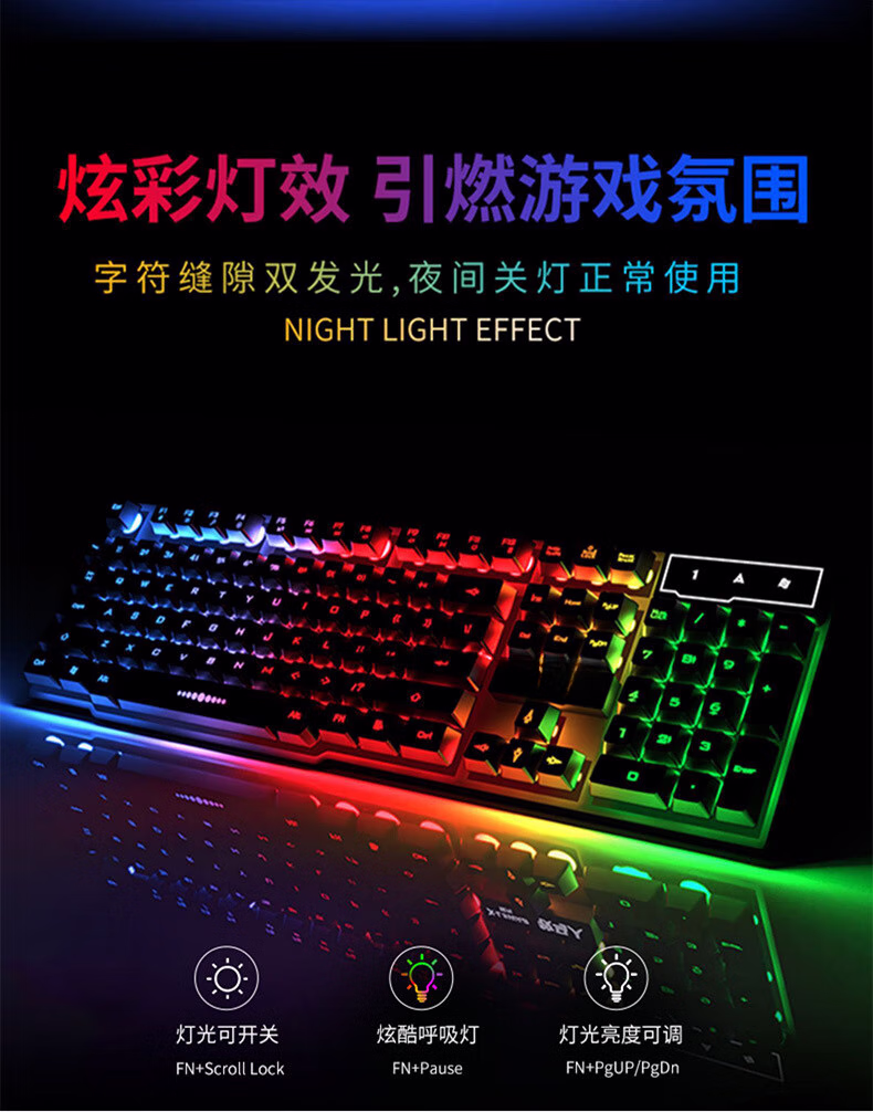 朋克风键盘高颜值发光有线USB键鼠套装